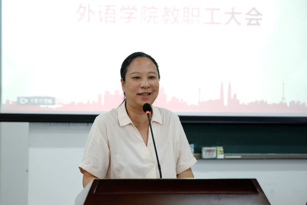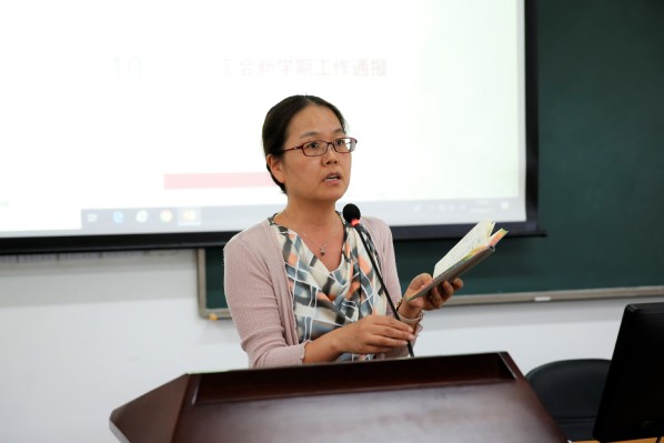 工会主席苏俊玲代表学院工会通报了上学期工会工作成果、工会委员选举变动,以及新学期工会工作新计划和新部署。“有困难找工会,工会就在你身边”。苏主席质朴却贴心的结束语无不让在场每位教职工感到暖心。