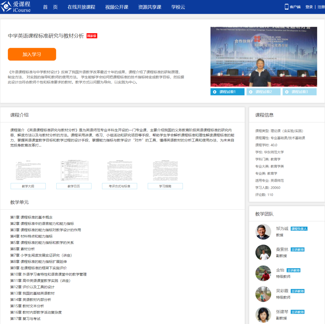 2. 《中学英语课程标准研究与教材分析》教师教育国家精品资源共享课
