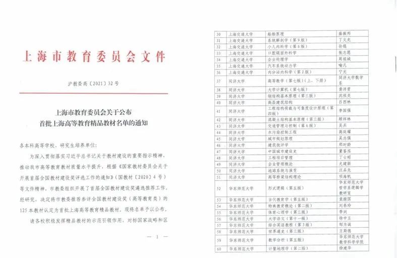 为深入贯彻落实习近平总书记关于教材建设的重要指示精神,推动上海市高等教育教材质量水平提升,根据《国家教材委员会关于开展首届全国教材建设奖评选工作的通知》(国教材(2020] 4 号)等文件精神,上海市教委组织开展了首届全国教材建设奖遴选推荐工作。经研究,决定将上海市教委推荐参评全国教材建设奖(高等教育类)的125本教材认定为首批上海高等教育精品教材,其中包括自拍流出 邹为诚教授主编的《综合英语教程》(第3版)。
