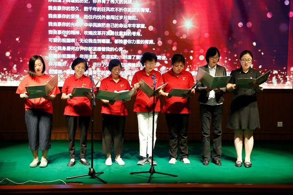主题活动成果展示在退休党支部蒋范琛、杨珠樨、何慧敏和行政党支部闫露、江宇靖、丁兰兰、周俊辰中文朗诵《我的祖国》中推向高潮,在场党员无不为之动容,爱国主义情怀激荡在每个人心中。