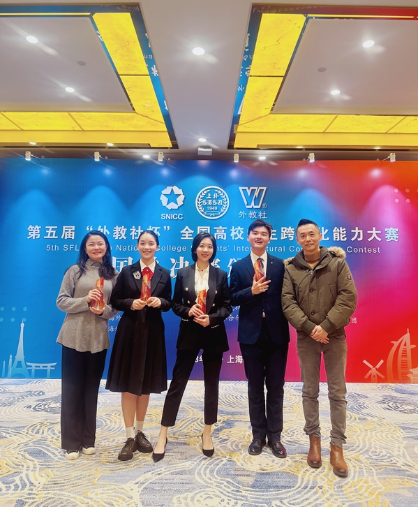 2022年6月,我校参赛队在大学英语教学部李辉、金怡老师悉心指导下,经过近半年的培训,全面提升团队成员的跨文化理论和分析能力。2022年12月,在上海赛区的决赛中获得一等奖并晋级全国总决赛。后续,两位老师继续利用寒假时间集训队伍,提升团队的综合实力,备战全国赛。