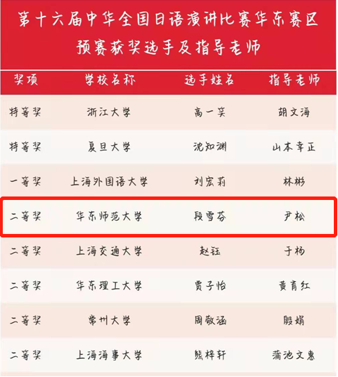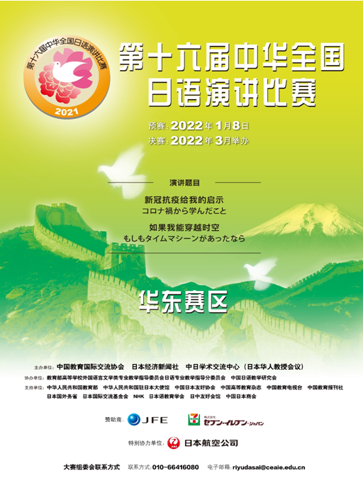 第十六届中华全国日语演讲比赛华东区预赛采用“线上+线下”的形式进行,来自华东地区上海、浙江、江苏、江西4省市的49所高校经过预赛,32所高校的32位选手成功晋级。比赛全程线上直播,上午播放各选手命题演讲视频,下午则是随机抽取题目的即兴演讲环节。