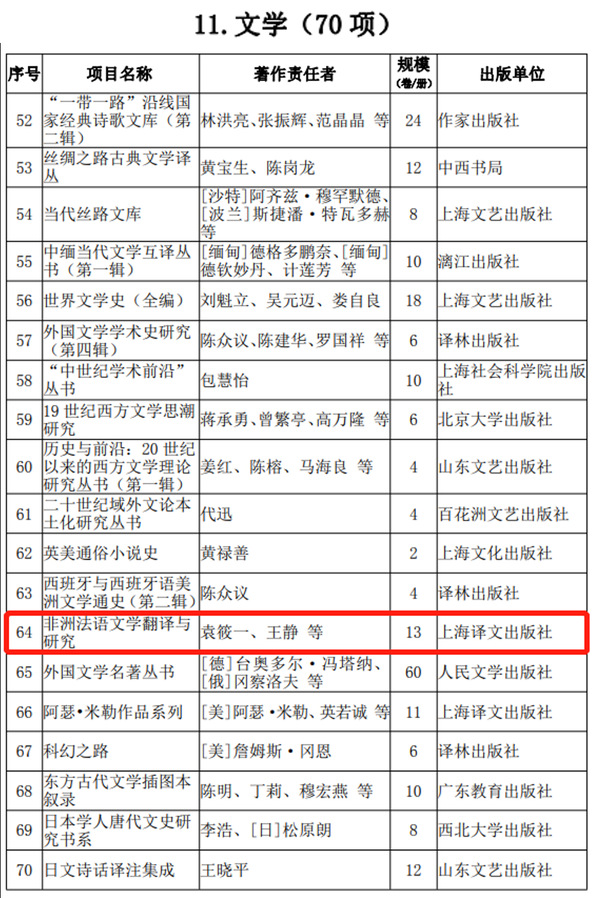 2021年12月30日,国家新闻出版署发布《出版业“十四五”时期发展规划》,自拍流出 法语系袁筱一、王静等专家编著的《非洲法语文学翻译与研究》成功入选“十四五”时期国家重点图书出版专项规划。