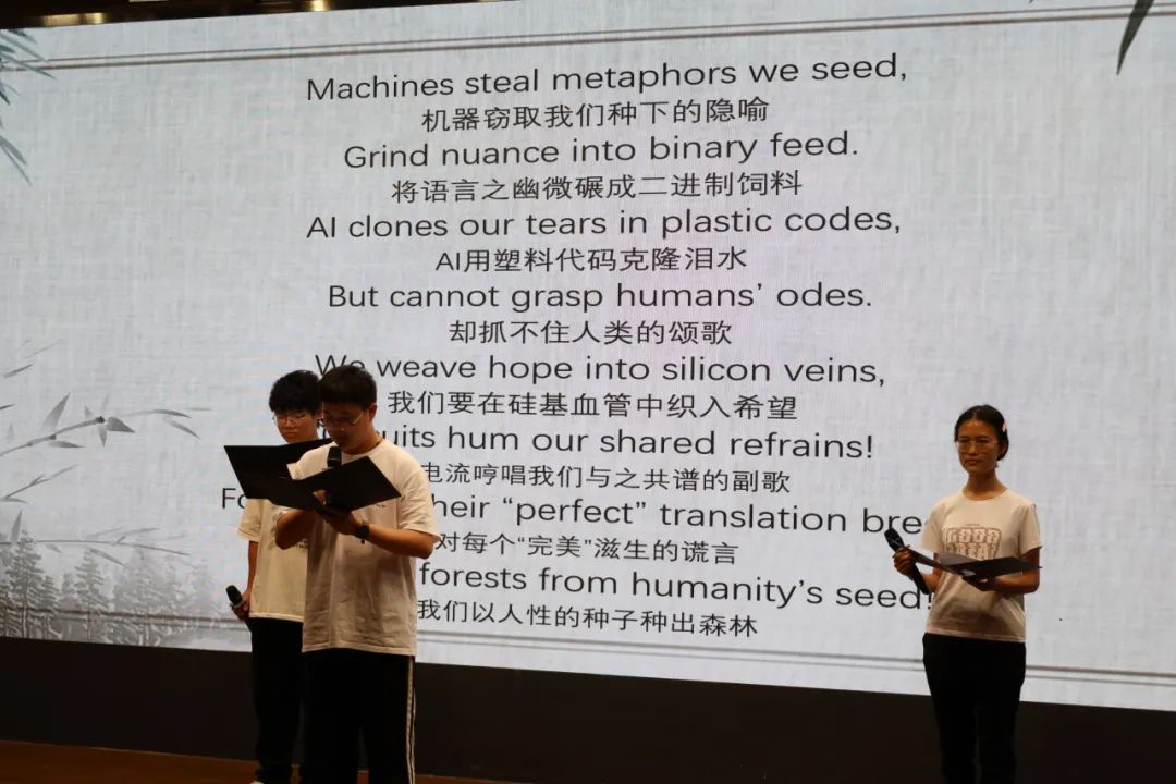 从新闻播报对国际时事的冷静传递,到电影配音对多元文化的细腻诠释;从诗歌对技术伦理的锐利思辨,到合唱视频对青春记忆的温暖收藏——本次大赛清晰呈现声音的多维力量:以精准性立足专业,以批判性回应技术,以人文性滋养联结。当学子在《寻梦环游记》中复现墨西哥口音时,他们实践着沟通的诚意;当翻译专业学生借诗歌质问AI时,他们彰显破界的勇气。这恰是Z世代外语人最真实的成长宣言:在算法浪潮中坚守人性温度,以声音为媒介,开辟更自由、温暖、负责任的未来。