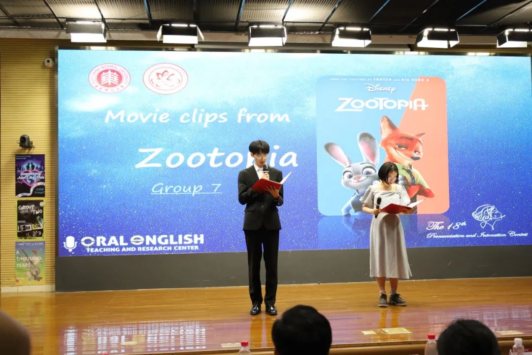 大赛中,学院2024级英语系与翻译系学生通过单词绕口令、国际新闻播报、电影配音及班级合唱四个环节,全面展示了学生扎实的语音基本功与出色的跨文化表达能力。