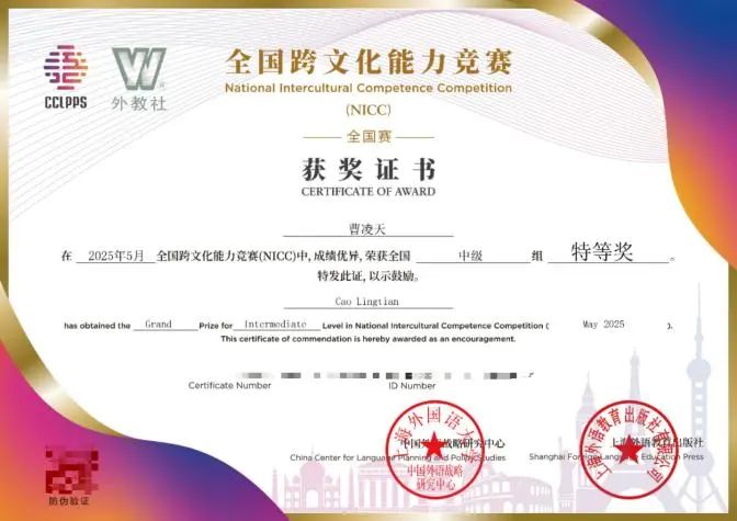 全国跨文化能力考试暨竞赛由中国外语战略研究中心与上海外语教育出版社联合主办,旨在考查学生在跨文化交际情境中有效、得体交流的综合能力,涵盖跨文化交流技能、认知技能、态度、意识及中外文化知识等六大要素。考试分初级、中级和高级。本次是我校学子第四次参与全国跨文化能力考试,截至目前,同学们屡创佳绩,获奖情况如下: