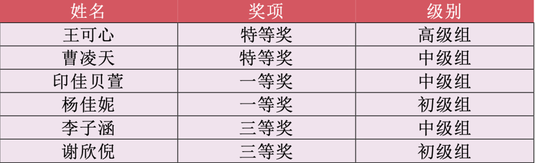 热烈祝贺获奖的同学!