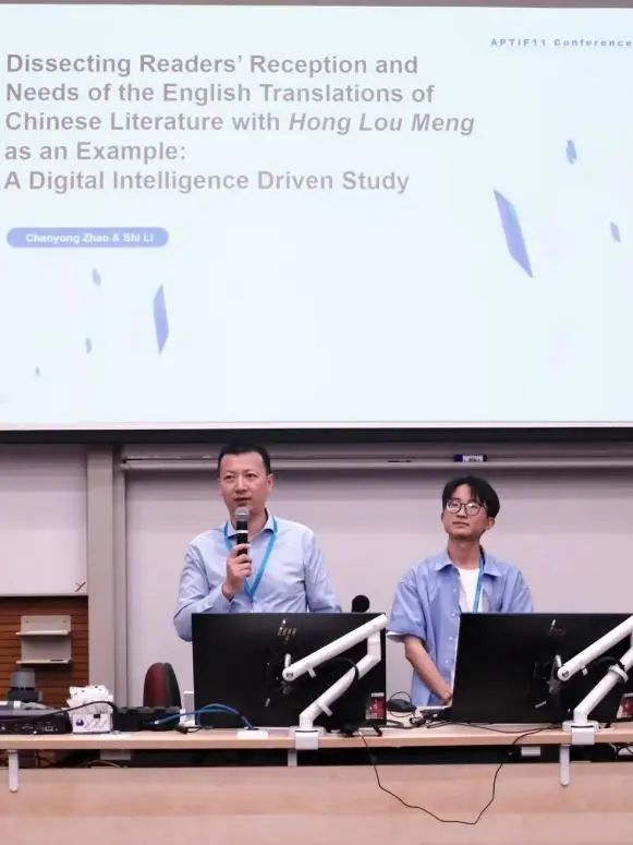 赵朝永教授作题为“Dissecting Readers’Reception and Needs of the English Translations of Chinese Literature with Hong Lou Meng as an Example: A Digital Intelligence Driven Study”(赵朝永、李实)的报告。该研究以数智技术为驱动,细粒度挖掘《红楼梦》英译本的读者述评,依托自然语言处理技术系统辨析大众读者与专业读者的接受偏好及互动显隐。通过厘析英语读者的需求层级及类型,进而阐明《红楼梦》英译接受效果的分级优化路径,有效更新了传统翻译接受研究的架构范围和操作模式。赵朝永教授指出,基于对文学翻译接受效果的现实判断,以读者需求优先取向作出前瞻进而俾补阙遗,有助于促进中国古典小说精准国际传播的可持续发展与变革式创新。