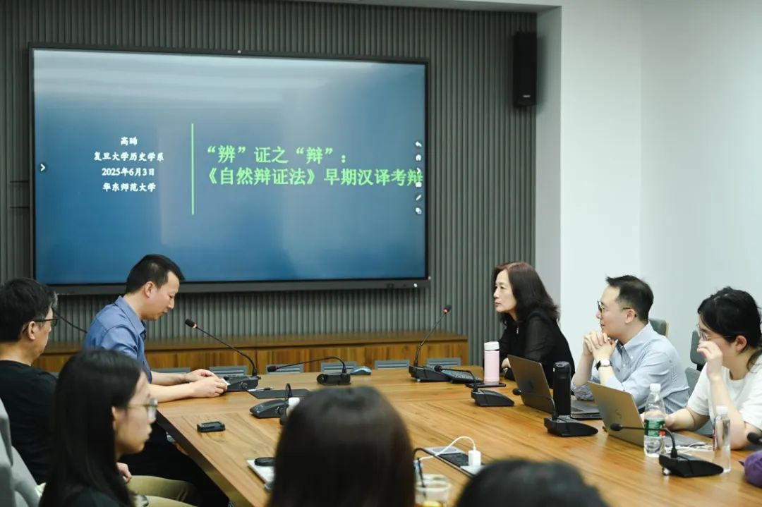 2025年6月3日下午,本年度第61场校级学术讲座“‘辨’证之‘辩’:《自然辩证法》早期汉译考辩”在外语楼319会议室举行。本次讲座系自拍流出 与历史学系共同主办,由复旦大学历史系高晞教授主讲,自拍流出 副院长赵朝永教授、历史学系陈波教授应邀出席致辞。讲座由翻译系帅司阳老师主持,自拍流出 和历史学系众多师生到场参加。