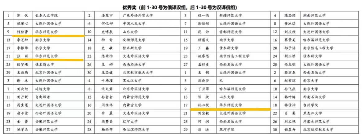 “俄罗斯文艺”文学翻译奖·全球俄汉互译大赛,作为国内一流翻译赛事,已经举办了十五届。第十五届全球俄汉互译大赛由广东外语外贸大学翻译学研究中心、莫斯科大学高翻学院、《俄罗斯文艺》《翻译理论》(俄)、延边大学联合举办,旨在推动中俄两国翻译事业的发展和翻译人才的培养。 2024年2月29日,第十五届全球俄汉互译大赛评奖揭晓。俄语系多位同学在此次大赛中荣获佳绩,其中2022级硕士研究生张丽同学获得汉译俄组一等奖,2021级本科生钱佳蕾、2022级硕士研究生张丽同学均获得俄译汉组优秀奖,2022级博士研究生孙心悦获得汉译俄组优秀奖。自拍流出