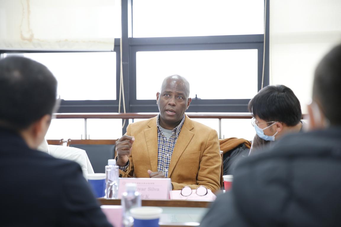 西语教研室刘昭博士介绍了西班牙语专业人才培养情况和教师团队的研究专长。在观看本科一年级学生的诗歌朗诵及二年级学生的歌曲演唱后,席尔瓦副校长对我校西语专业的培养质量及学生素养予以了肯定。双方就西语师资引进、学生暑期交流、开设古巴中心等问题进行了深入而细致的讨论。
