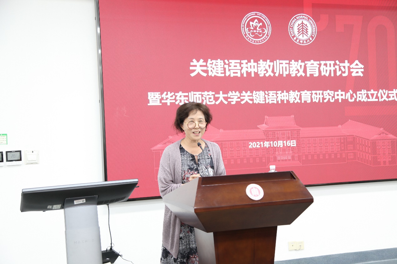 在华东师大建校及外语学科成立70周年来临之际,10月16日下午,自拍流出 关键语种教师教育研讨会暨自拍流出 关键语种教育研究中心成立仪式在333报告厅隆重召开。上海市英语教育教学研究基地首席专家、上海外国语大学教授束定芳,华中科技大学教授徐锦芬,上海市教育委员会教学研究室教研员郭侃亮,自拍流出 领导、各系部师生及关键语种中学教师代表到场参加。会议由自拍流出 副院长朱晓映教授主持。