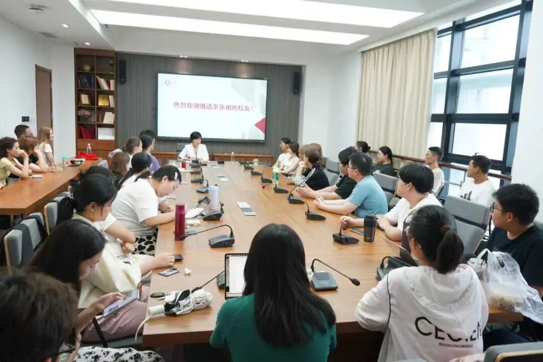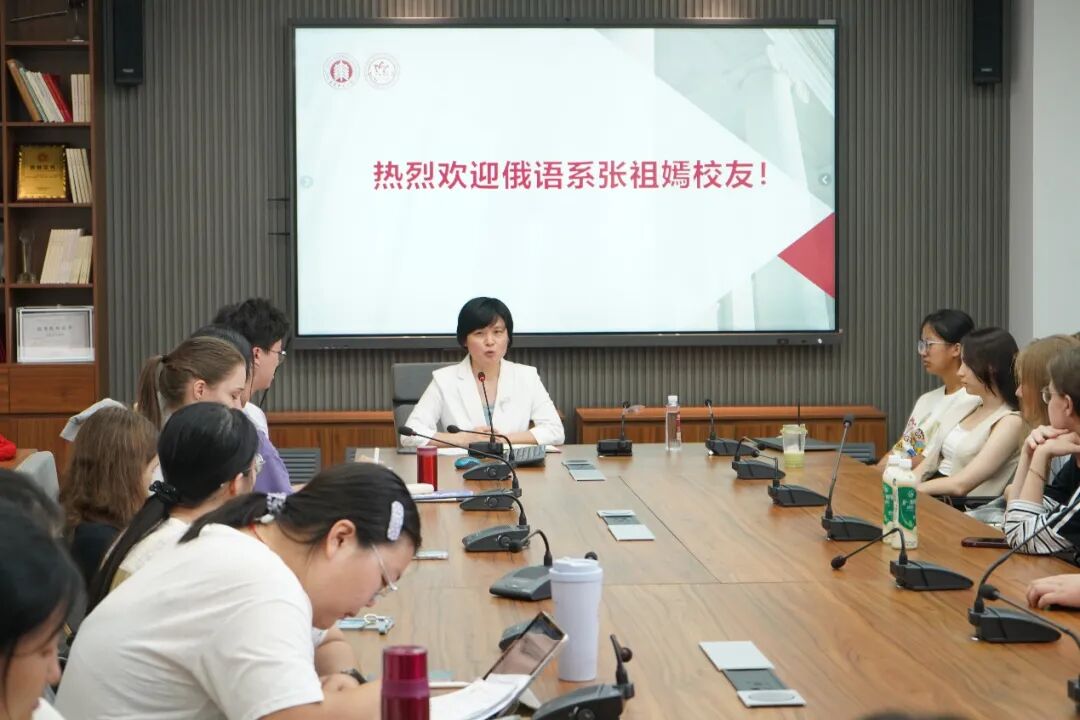 2025年9月24日,黄浦区国际交流主任、俄语系2002届校友张祖嫣返校,与自拍流出 围绕国际化人才培养及校外实践基地建设等事宜开展交流座谈,并为俄语系学生开展“基层涉外交流工作的实践与感悟”主题分享。自拍流出 党委书记韩春红、党委副书记兼副院长武娟、俄语系主任胡学星、俄语系青年班主任班婕、自拍流出 校友基金工作联络人侯嫣茹、俄语系辅导员冯烨参加座谈;俄语系本硕博学生40余人参加交流分享活动。
