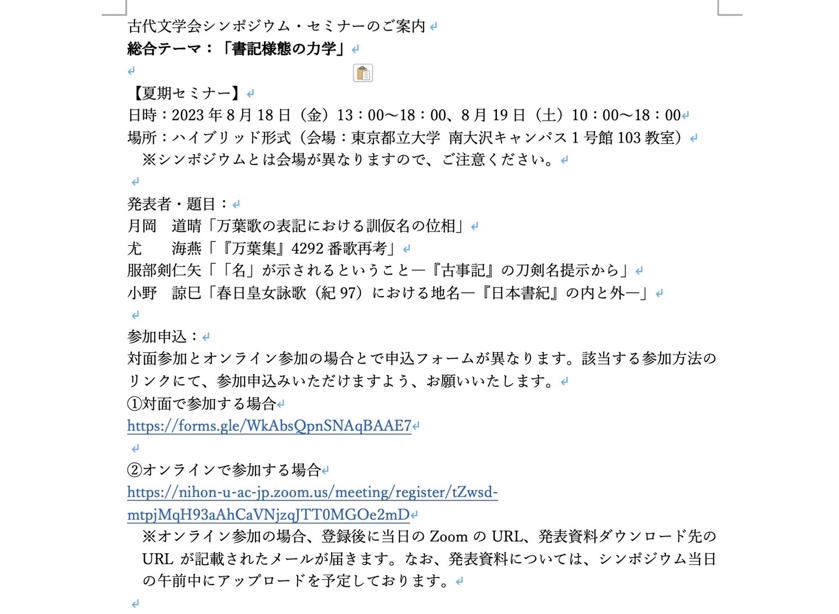 尤海燕老师在日本古代文学会主办的“日本古代文学会夏季研讨会学会”上发表:“《万叶集》第4292号歌新考”(地点:东京都立大学)