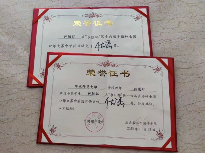 王建英老师指导研究生黄悦齐参加人民中国杯“日语国际翻译大赛”获研究生组日译汉三等奖。