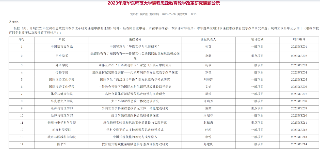 吴红哲老师的校级教改项目“2023年度大夏学堂优质示范课程建设项目(日语语法)”成功立项。