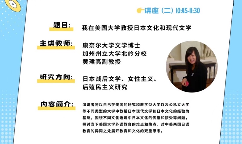 美国康奈尔大学博士加州大学北岭分校黄珺亮副教授来学院讲座:《我在美国的大学教授日本文化与现代文学》。