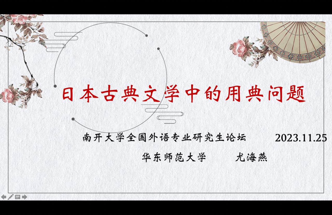 尤海燕老师在南开大学主办的“第三届全国外语专业研究生论坛讲座”上做主旨发言:《日本古典文学中的用典问题》。