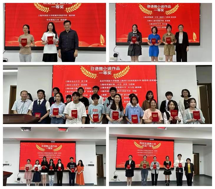 上海市青少年多语种微小说大赛颁奖仪式,石冈洋子老师指导俞璐悦获一等奖,张丰驰二等奖,吴嘉欣、罗鑫婷、陈易之三等奖。