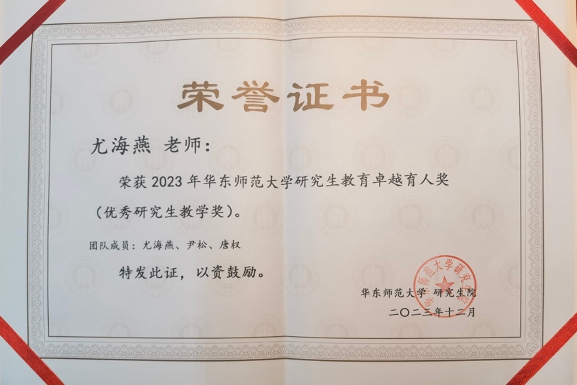 尤海燕老师、尹松老师、唐权老师获研究生卓越育人奖。