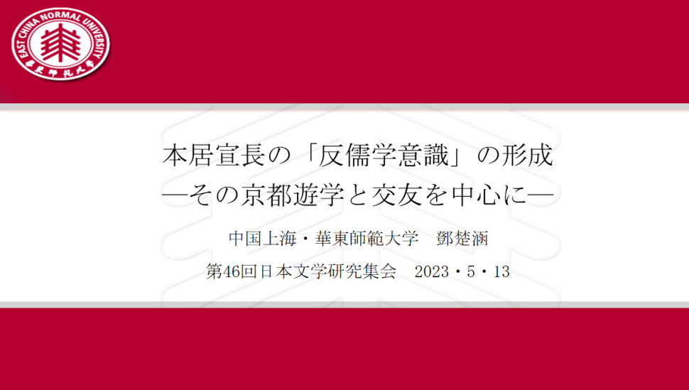 尤海燕老师指导硕士生邓楚涵在日本国文学研究资料馆主办的“第46届国际日本文学研究集会”上发表“本居宣長の儒学受容史-その京都遊学と交友を中心に-”,系中国大学硕士生首次在该学会上作报告。